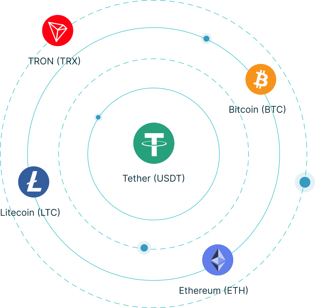 USDT (в сетях Tron и Ethereum), Bitcoin, Bitcoin Cash, Litecoin, Ethereum, Ethereum ERC20, Binance, Binance BEP20, Tron.